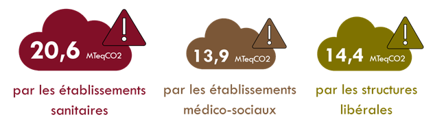 Aujourd’hui 8,1% des émissions de Gaz à Effet de Serre en France sont produites par le secteur santé, soit 48,9 MTeqCO2, répartis de la manière suivante :